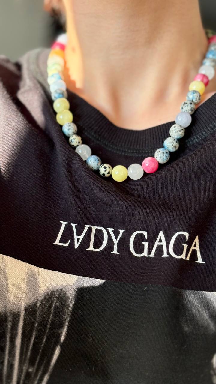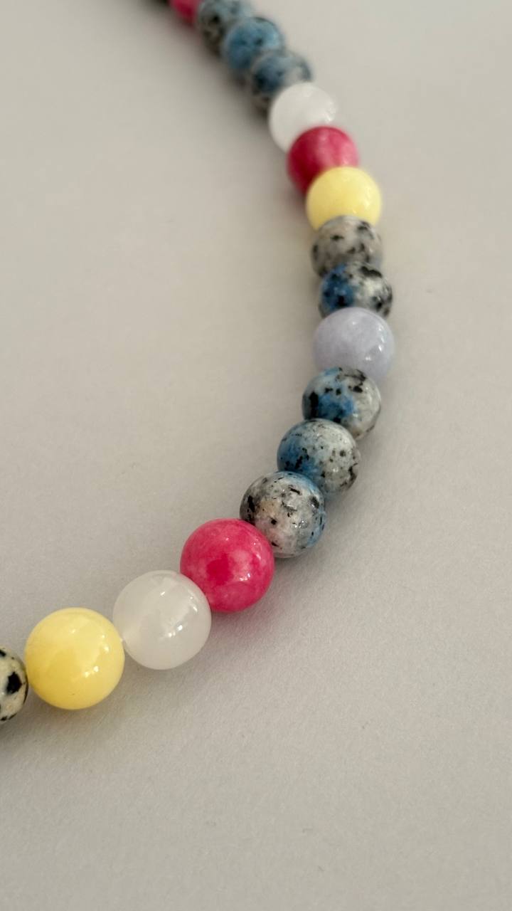 • wykonany z połączenia szklanych i naturalnych kamieni