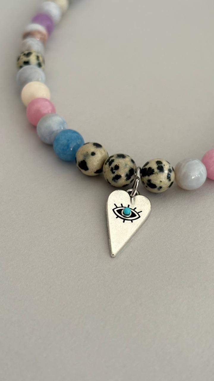 • wykonany z połączenia szklanych i naturalnych kamieni